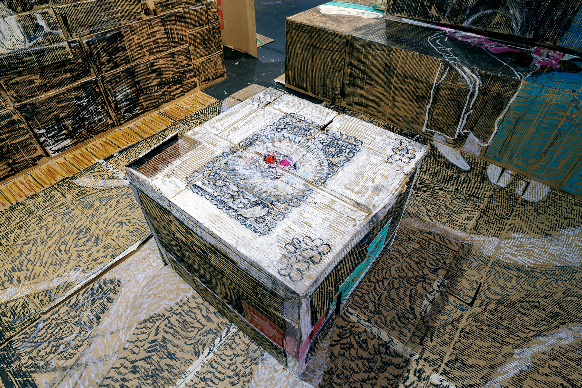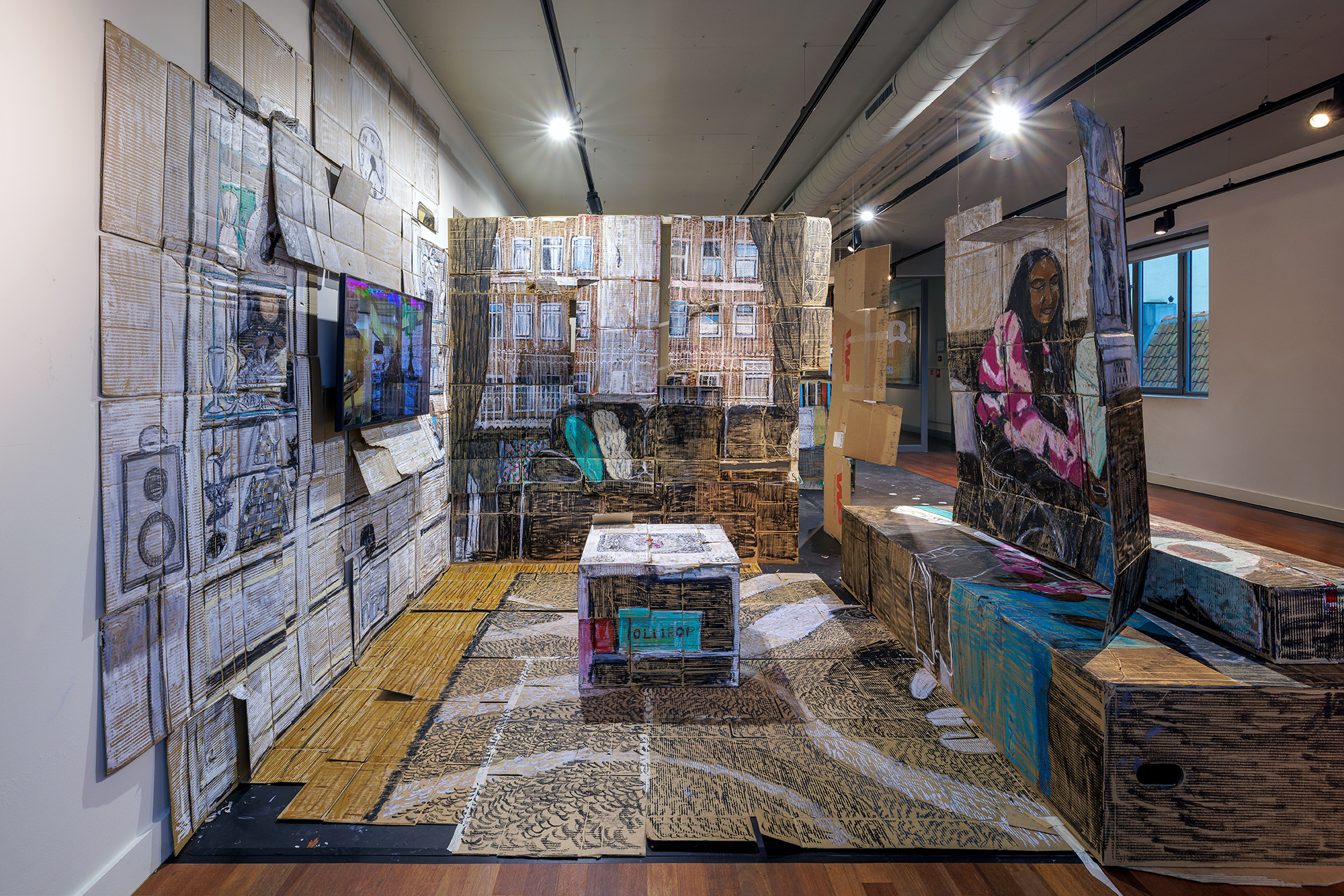 Installation with recycled cardboard
